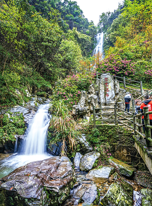 山林坡地间,峡谷河岸旁,娇艳的杜鹃花已经盛放,一团团一簇簇,绚丽而浪漫。据了解,景区现已有情人湖、磐石、天线瀑布、桂花峡鸳鸯瀑布、月亮潭、石树等20余个景点可供游览。