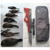 通过现场搜查,民警当场查获了一支气枪、若干铅制子弹以及9只被射杀的野生鸟类。